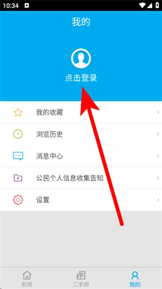 在个人中心页面,点击登录区域,进入登录页面。