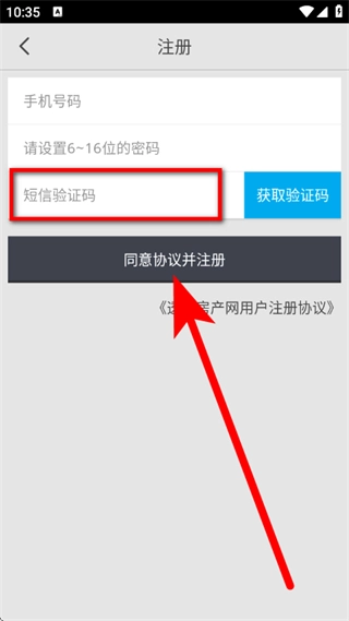输入短信验证码后,勾选同意相关协议并点击注册按钮,即可完成账号注册流程。