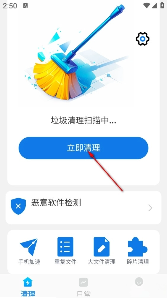 打开软件后点击中间的立即清理