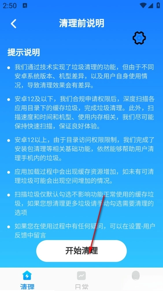 查看清理前说明后再点击开始清理