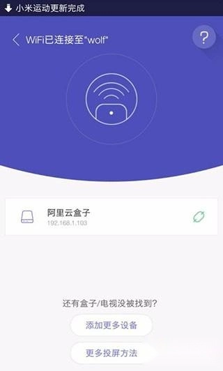 在本站找到悟空遥控器,先在手机上完成安装并打开应用。此时,悟空遥控器会自动在局域网内搜索可连接的智能设备,找到后点击进行连接。就像图示那样点击“阿里云盒子”,手机随即会弹出提示“请在电视机上安装悟空遥控器”。