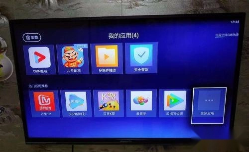 接下来要在智能电视机或者电视盒子上安装“悟空遥控器”的接收端。找到盒子自带的应用库,按照图示进入“我的应用”页面后,点击“更多应用”选项。