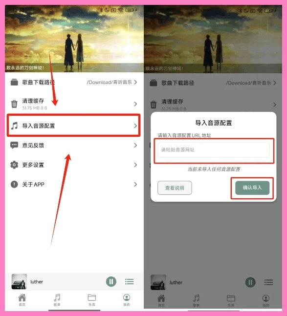 打开软件,在【我的】页面,点击【导入音源配置】。