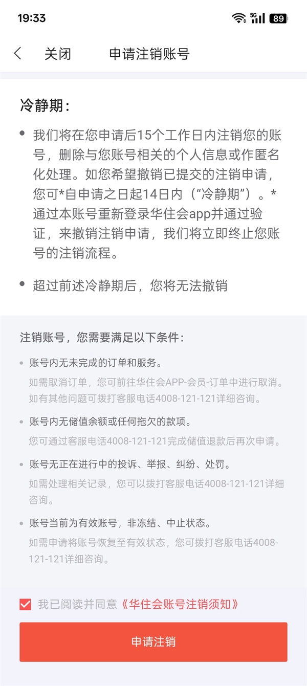 点击【申请注销】按钮后,输入手机验证码就能完成注销操作。