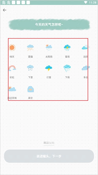 首先选择记录日记的天气;