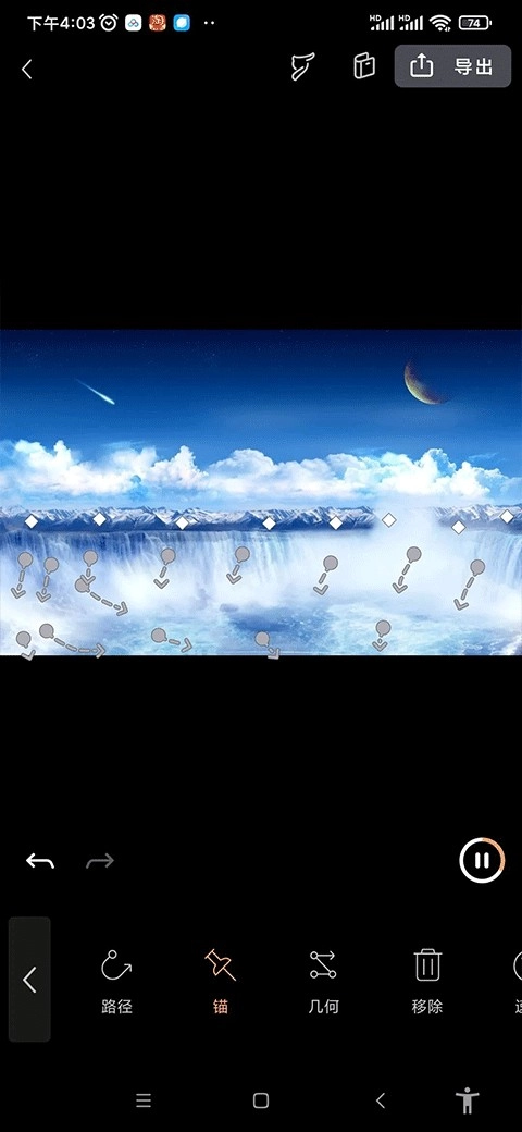 点击“锚”按钮,在人像周边点击几次,这样就能让人像以外的区域保持静止。