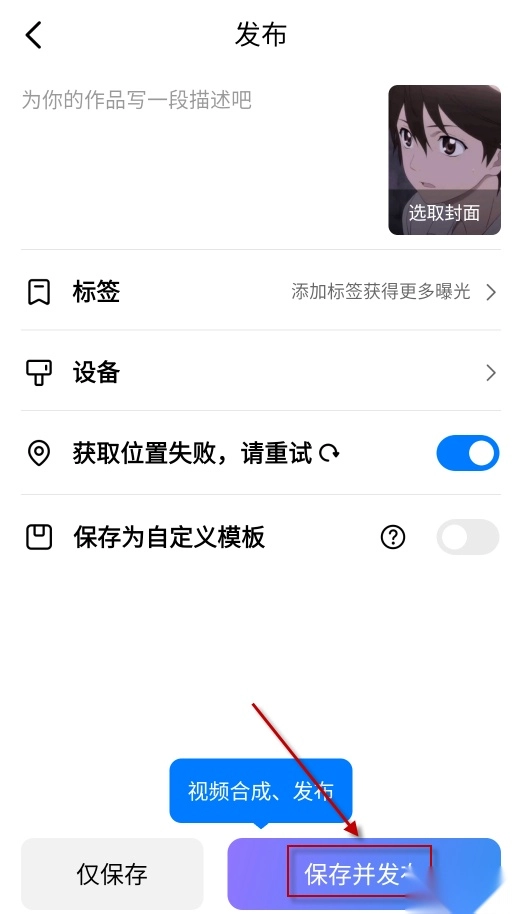 添加作品描述,设置标签、位置等信息,最后点击“保存合并”选项就可以了。