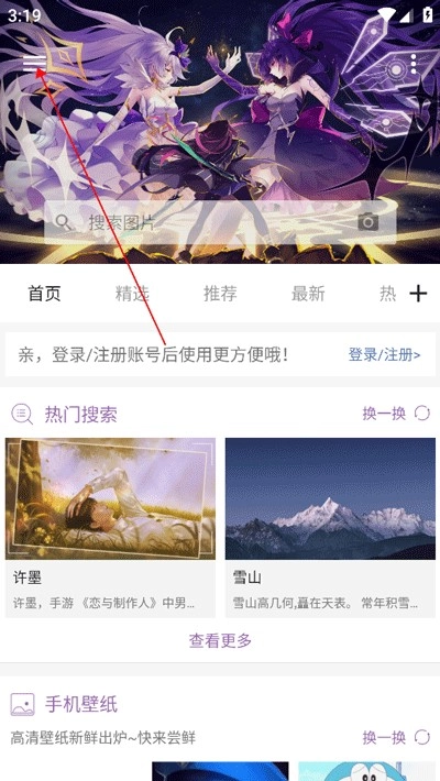 打开软件后选择界面左上角的三道横杠标志