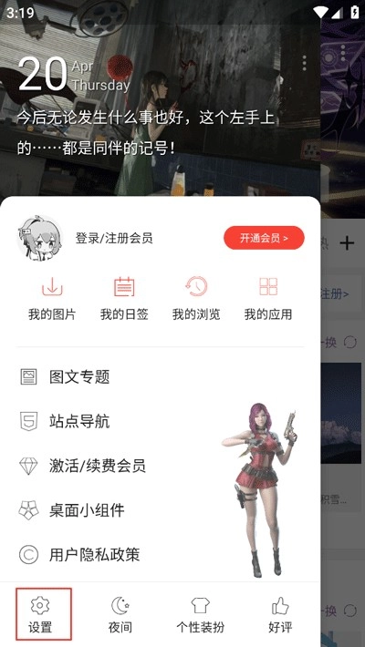 在设置中找到一件切换壁纸组件选项并点击打开