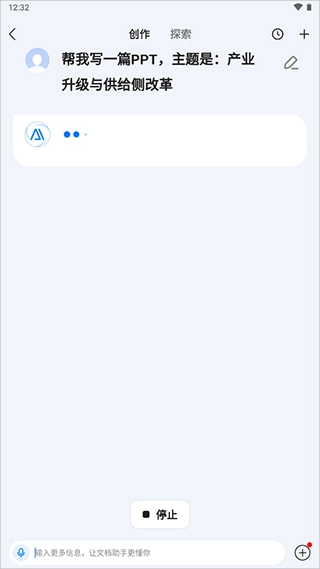 然后在打开的页面里依照指引开展操作,用户既能够输入主题,也可以选择文档来进行创作。