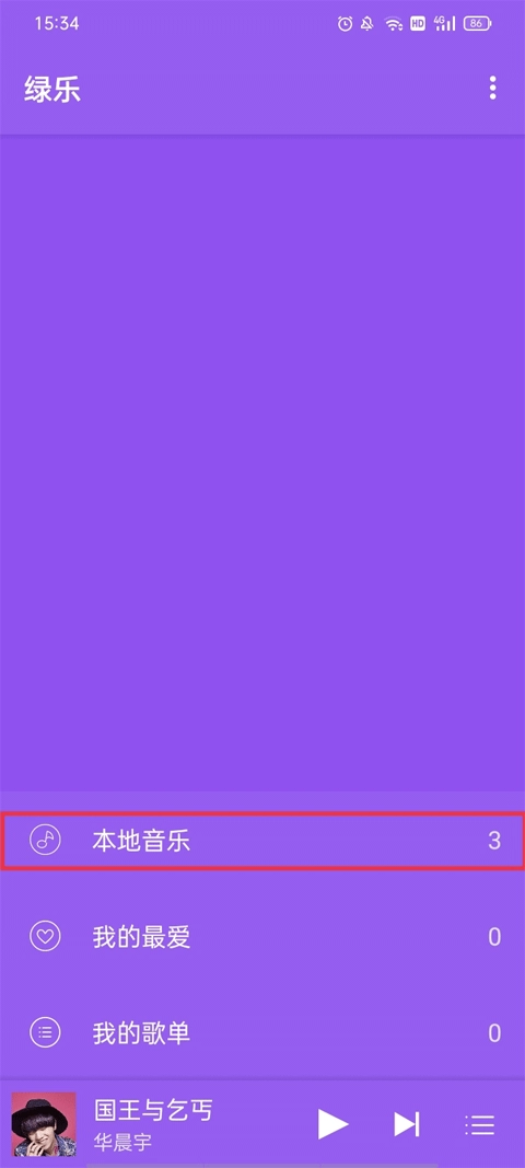 你只需打开绿乐进入主界面,应用就会自动扫描手机内存里存储的歌曲,并将它们添加到程序中。