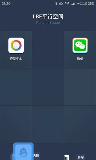 LBE平行空间支持几乎所有安卓应用登录第二个账号,能同时接收两个账号的信息,且不同账户的数据相互独立、互不干扰。