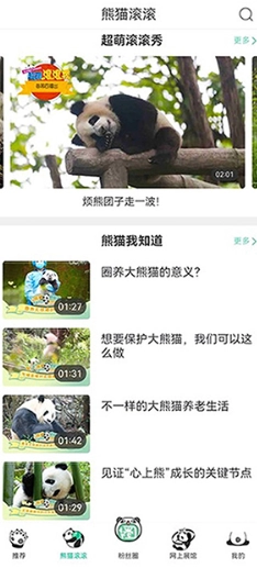 打开熊猫频道,进入熊猫滚滚界面,就能了解关于大熊猫的科普知识。