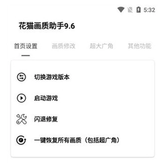 花猫画质助手9.6游戏版是该系列中相当实用的版本,作为专为FPS游戏玩家设计的手机画质辅助工具,它能帮助我们轻松突破手机性能瓶颈,解锁各类高清画质与超高帧率,让游戏体验更为流畅!这款9.6游戏版还提供了多种画质选项供我们自由挑选,这样在游戏里就能看得更清晰,击败敌人的概率也会显著提升。如果觉得视野不够开阔,还可以在超大广角专区进行调整,大幅扩展游戏中的视野范围,从而提前察觉敌人的行动轨迹!