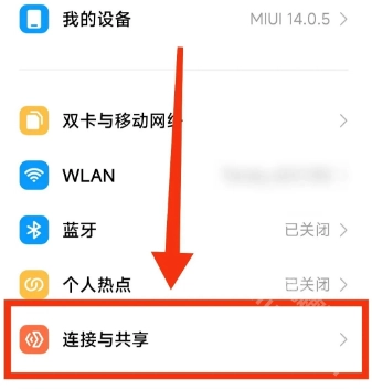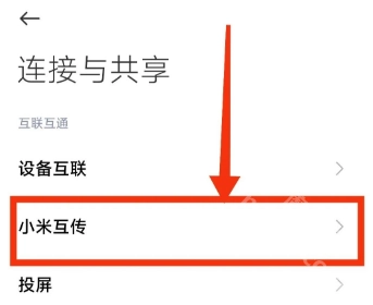 进入连接与共享页面,找到并点击“小米互传”。