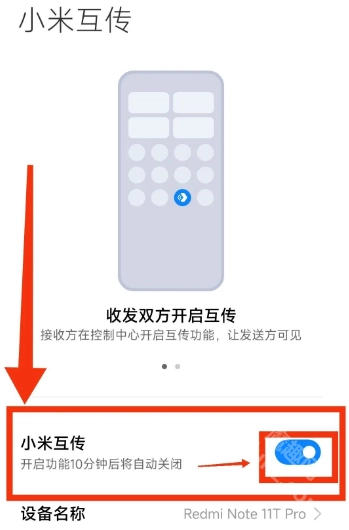 在小米互传页面,将“小米互传”按钮打开。