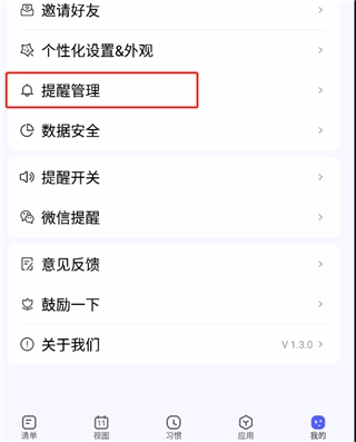 在个人信息页面,点击“提醒管理”选项,即可进入提醒管理的设置界面。