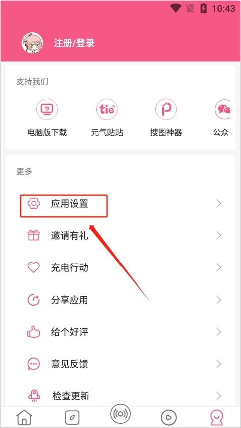 进入软件后选择“我的”,再进入“应用设置”选项。