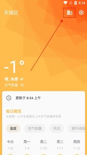 在本站打开已安装好的几何天气应用,它支持天气预警、小时级预报、15天预报、昨日气温查询等实用功能。