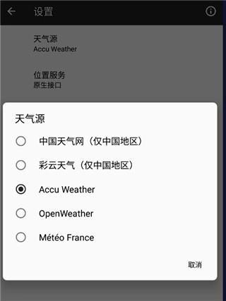 同时软件支持切换天气数据源。