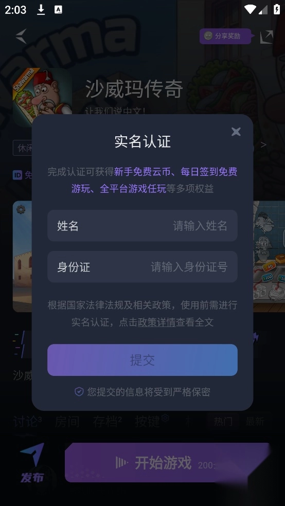 游玩前请完成实名认证。