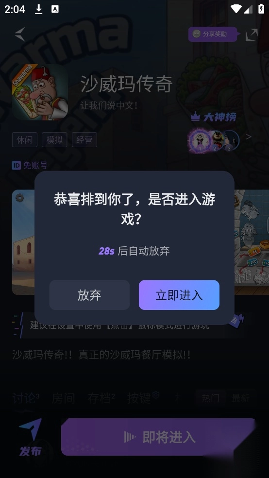 排队等待,进入游戏。