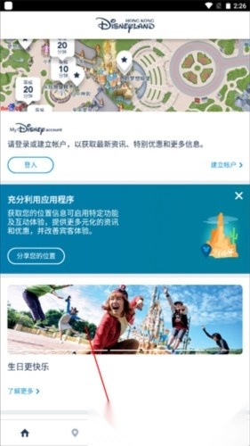 导航便捷:地图搭载GPS定位功能,能助您迅速定位自己在公园内的位置,以及周边游乐设施、迪士尼朋友见面点、餐馆和商店等场所。