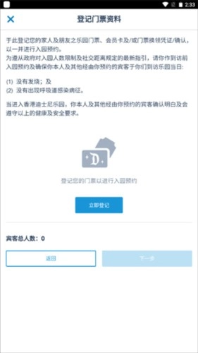 登记门票资料后点击下一步,完成预约。
