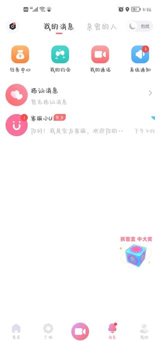 进入消息,用户可以在这里看待各种搭讪的消息。