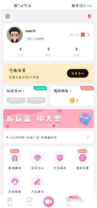进入视频功能后,用户每日都能获得一次免费与其他用户进行视频互动的机会。