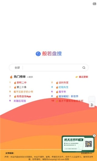 般若盘搜是一个拥有海量资源的网盘搜索平台,覆盖影视、小说等多种类别。平台不仅提供便捷的分类筛选功能,还支持资源搜索,并且所有内容都是免费的,有需求的用户随时都能来这里查找所需资源。