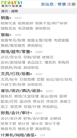 先打开黄河口信息港手机版,在首页就能开展找工作、交友、二手交易、参与教育培训等活动。
