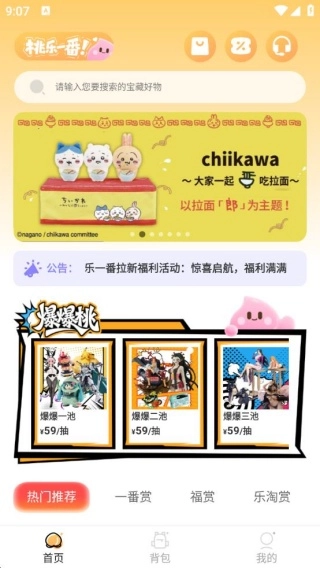 桃乐一番是一款聚焦潮玩、动漫周边等优质好物的购物应用,致力于为二次元与潮流文化爱好者构建一站式购物体验。平台提供名侦探柯南、初音未来等热门IP周边的抽奖及购买服务,同时支持对未发货、已提货的奖品进行查看、打包邮寄与交易等操作,全面满足用户对奖品的全流程管理需求。