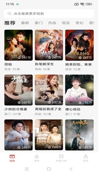 首页推送的热门与精彩短剧视频内容十分丰富,你可以随时进行搜索和观看。
