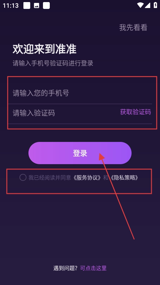 在登录页面填写手机号与验证码,勾选同意相关协议后,点击登录按钮即可完成登录操作。