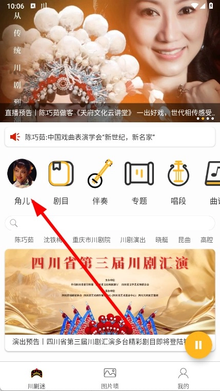 打开川剧迷,点击角儿选项。