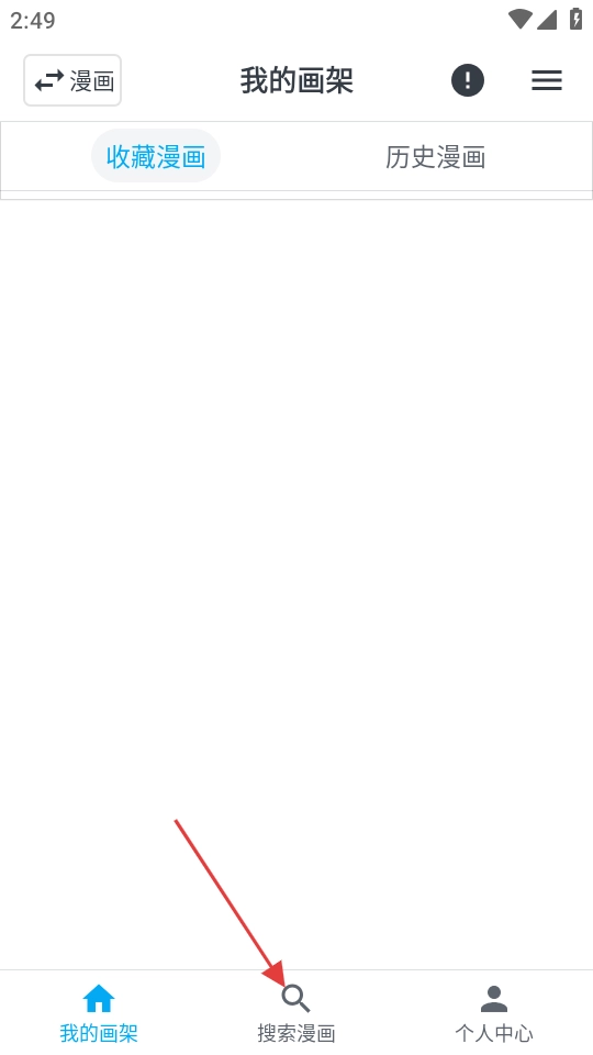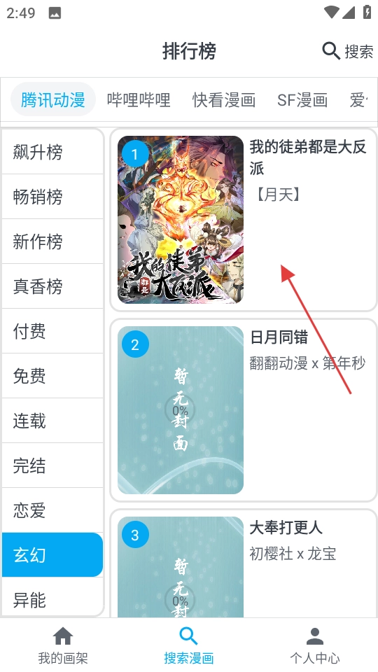 在我的画架页面,点击底部的“搜索漫画”按钮,就能进入排行榜页面。