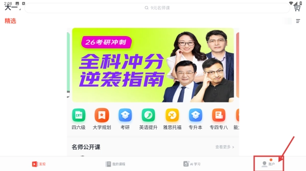 打开有道精品课应用后,点击底部的“我的”选项,即可进入个人中心页面。