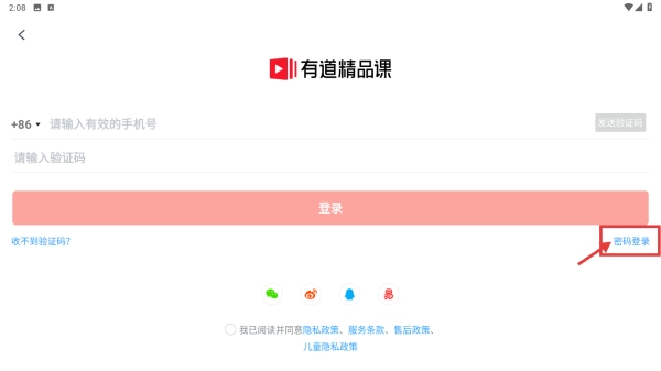 选择密码登录选项,切换至密码登录模式。