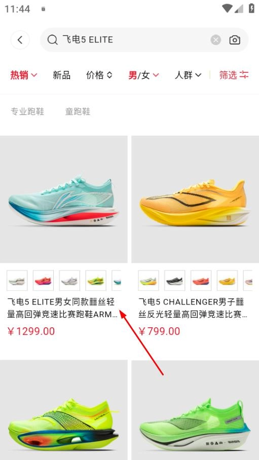 挑选自己喜欢的商品,像飞电5ELITE比赛跑鞋这类,然后点击对应的商品。