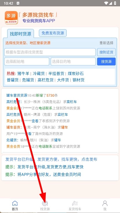 打开多源找货找车,点击底部找货源。