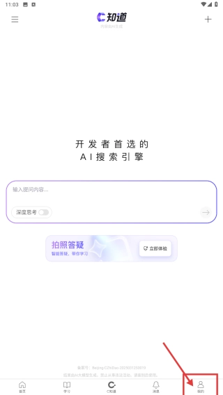 打开知道应用后,点击底部导航栏的“我的”选项,即可进入个人中心页面。