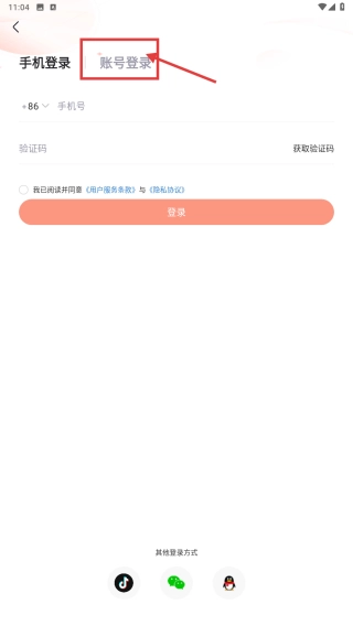 选择账号登录选项,切换至账号密码登录模式。