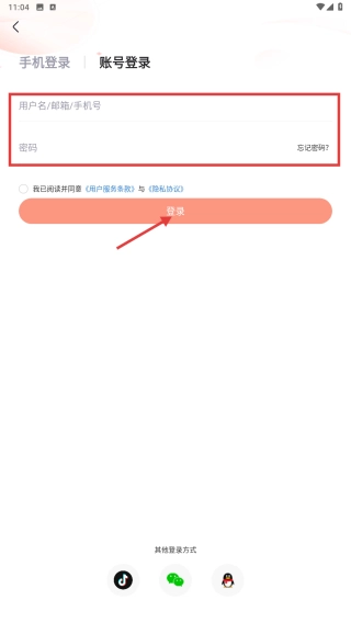 输入用户名、邮箱或手机号以及密码,勾选相关协议后点击登录按钮,即可完成账号登录操作。