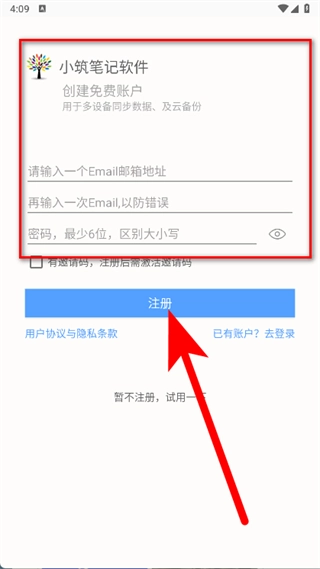 打开小筑笔记,在弹窗中点击同意,进入主界面。
