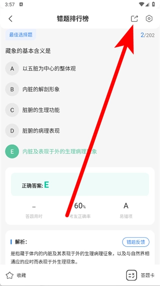 在错题排行榜页面,点击右上角的分享图标。