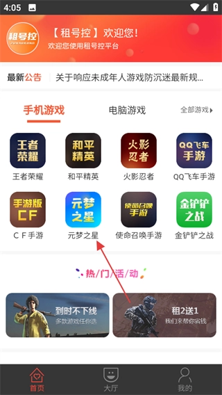 打开租号控的首页后,挑选你想租号的游戏(比如元梦之星),接着就能进入该游戏对应的租号列表页面了。