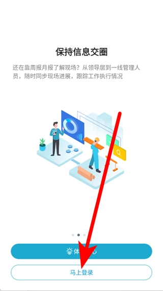 打开工程管理,在呈现信息交圈功能的引导页面,点击立即登录。
