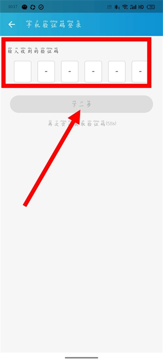 输入收到的验证码,点击下一步。