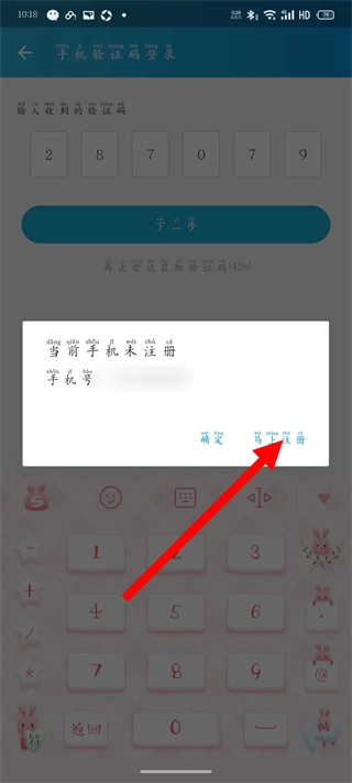 当手机未注册时会弹出提示弹窗,点击弹窗中的“去注册”按钮,完成注册流程后进行登录操作。